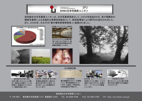 チラシの裏面には、協同組合日本写真家ユニオンの沿革と主な事業活動を紹介しています。